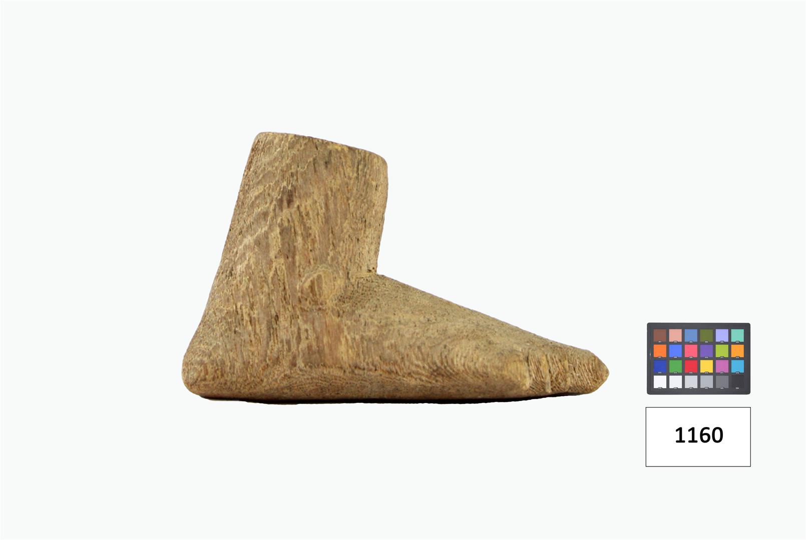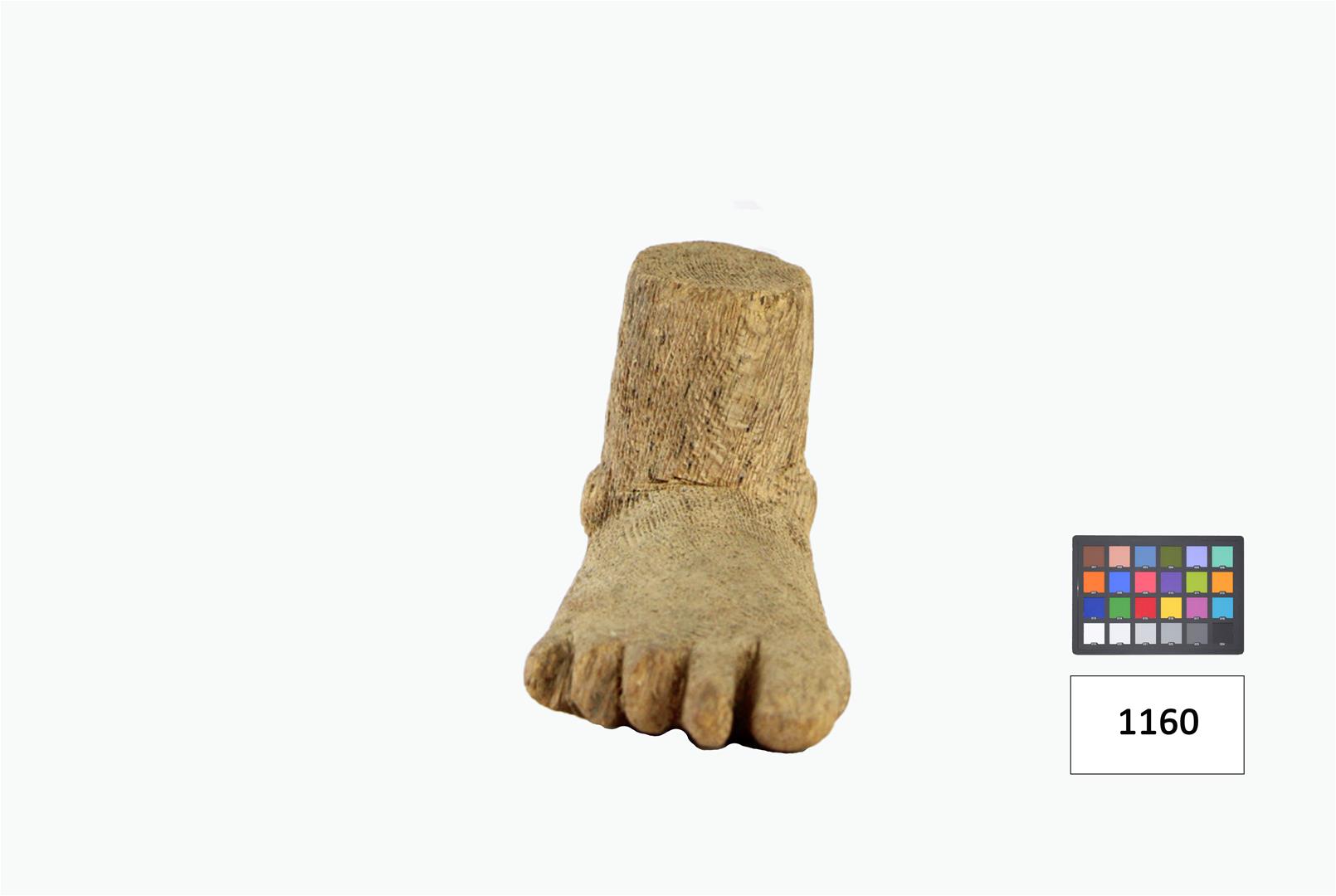 Pé humano composto por dois dedos e fragmento de três, prolongado fragmento de perna, tendo no tornozelo, cistos de ambos os lados.